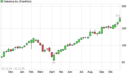 Mit dem Anstieg auf 300,00 EUR hat die Celestica-Aktie (ISIN CA15101Q2071) am 31.10.2025 ein neues All-Time-High erreicht und damit den Kurs vom 30.10.2025 eingestellt.Die Celestica-Aktie befindet ...weiterlesen