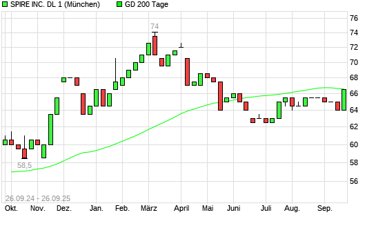 Mit dem Anstieg auf 66,00 EUR hat die Spire-Aktie am 25.09.2025 die 200-Tage-Linie nach oben gekreuzt.Die Spire-Aktie befand sich seit dem 18.08.2025 im langfristigen Abwärtstrend und hat in ...weiterlesen