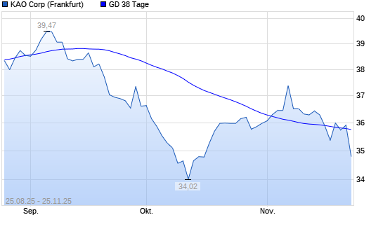 Mit dem Anstieg auf 35,92 EUR hat die Kao-Aktie am 24.11.2025 die 38-Tage-Linie nach oben gekreuzt.Die Kao-Aktie befindet sich seit dem 17.09.2025 im langfristigen Abwärtstrend und hat in diesem ...weiterlesen