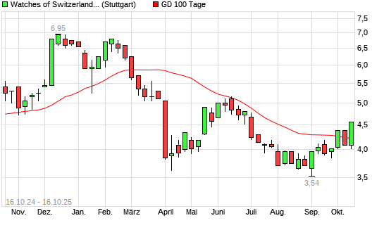 Mit dem Anstieg auf 4,38 EUR hat die Watches of Switzerland-Aktie am 15.10.2025 die 100-Tage-Linie nach oben gekreuzt.Die Watches of Switzerland-Aktie befindet sich seit dem 10.03.2025 im langfristigen ...weiterlesen