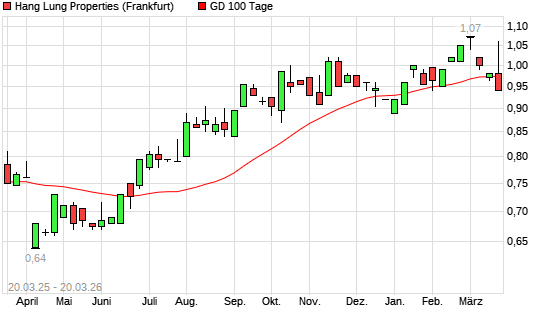 Mit dem Rücksetzer auf 0,97 EUR hat die Hang Lung Properties-Aktie am 19.03.2026 die 100-Tage-Linie nach unten gekreuzt.Die Hang Lung Properties-Aktie befindet sich seit ...weiterlesen