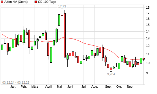 Mit dem Rücksetzer auf 10,22 EUR hat die Alfen-Aktie am 02.12.2025 die 100-Tage-Linie nach unten gekreuzt.Die Alfen-Aktie befindet sich seit dem 13.05.2025 im langfristigen Abwärtstrend ...weiterlesen