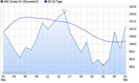Mit dem Rücksetzer auf 100,00 EUR hat die KBC Groep-Aktie am 30.09.2025 die 20-Tage-Linie nach unten gekreuzt.Die KBC Groep-Aktie befindet sich seit dem 10.04.2025 im langfristigen Aufwärtstrend ...weiterlesen