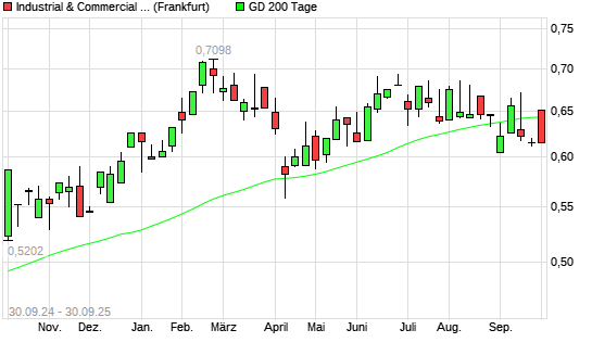 Mit dem Anstieg auf 0,65 EUR hat die Industrial & Commercial Bank of China-Aktie am 29.09.2025 die 200-Tage-Linie nach oben gekreuzt.Die Industrial & Commercial Bank of China-Aktie befand ...weiterlesen
