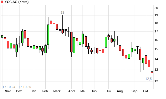 Mit dem Rücksetzer auf 12,55 EUR hat die YOC-Aktie (ISIN DE0005932735) am 16.10.2025 ein neues 12-Monats-Tief erreicht und damit den Kurs vom 10.10.2025 eingestellt.Die YOC-Aktie befindet ...weiterlesen
