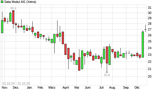 Mit dem Anstieg auf 26,80 EUR hat die Data Modul-Aktie (ISIN DE0005498901) am 20.10.2025 ein neues 6-Monats-Hoch erreicht und damit den Kurs vom 17.10.2025 eingestellt.Die Data Modul-Aktie befindet ...weiterlesen