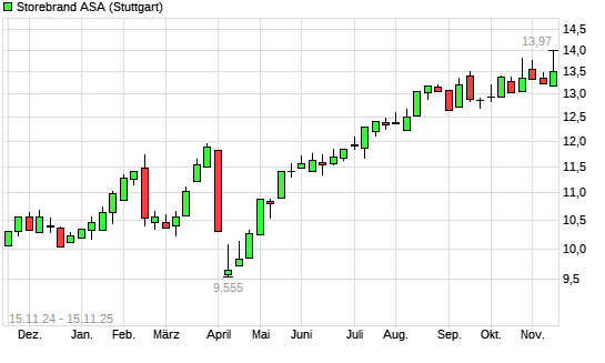 Mit dem Anstieg auf 13,83 EUR hat die Storebrand-Aktie (ISIN NO0003053605) am 14.11.2025 ein neues All-Time-High erreicht und damit den Kurs vom 24.10.2025 eingestellt.Die Storebrand-Aktie befindet ...weiterlesen