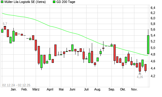 Mit dem Anstieg auf 4,94 EUR hat die Müller - Die lila Logistik-Aktie am 01.12.2025 die 200-Tage-Linie nach oben gekreuzt.Die Müller - Die lila Logistik-Aktie befand sich seit dem 10.09.2025 ...weiterlesen