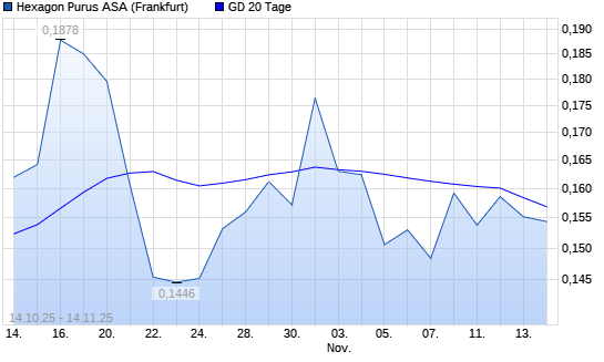 Mit dem Anstieg auf 0,16 EUR hat die Hexagon Purus-Aktie am 13.11.2025 die 20-Tage-Linie nach oben gekreuzt.Die Hexagon Purus-Aktie befindet sich seit dem 12.11.2025 im langfristigen Aufwärtstrend ...weiterlesen