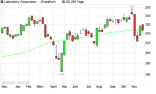 Mit dem Rücksetzer auf 222,00 EUR hat die Laboratory Corporation of America-Aktie am 18.11.2025 die 200-Tage-Linie nach unten gekreuzt.Die Laboratory Corporation of America-Aktie befand ...weiterlesen