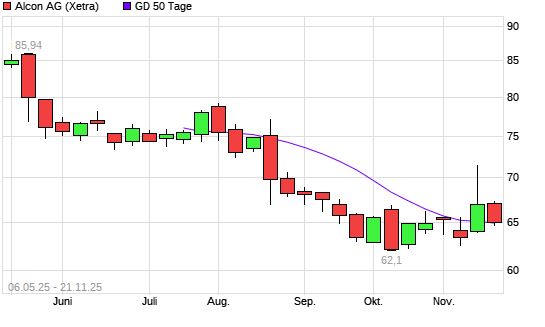 Mit dem Anstieg auf 65,46 EUR hat die Alcon-Aktie am 20.11.2025 die 50-Tage-Linie nach oben gekreuzt.Die Alcon-Aktie befindet sich seit dem 14.05.2025 im langfristigen Abwärtstrend und hat in ...weiterlesen