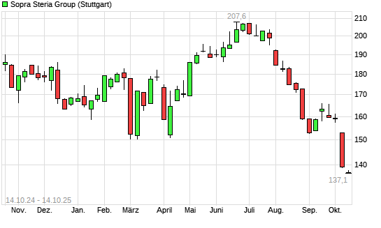Mit dem Rücksetzer auf 137,30 EUR hat die Sopra Steria Group-Aktie (ISIN FR0000050809) am 13.10.2025 ein neues 12-Monats-Tief erreicht und damit den Kurs vom 10.10.2025 eingestellt.Die ...weiterlesen