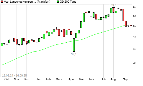 Mit dem Rücksetzer auf 50,00 EUR hat die Van Lanschot Kempen-Aktie am 15.09.2025 die 200-Tage-Linie nach unten gekreuzt.Die Van Lanschot Kempen-Aktie befand sich seit dem 12.09.2025 im ...weiterlesen