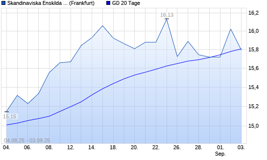 Mit dem Anstieg auf 16,02 EUR hat die Skandinaviska Enskilda Banken-Aktie am 02.09.2025 die 20-Tage-Linie nach oben gekreuzt.Die Skandinaviska Enskilda Banken-Aktie befindet sich seit dem 02.05.2025 ...weiterlesen
