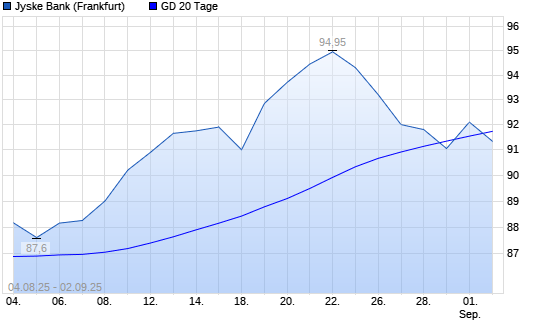 Mit dem Anstieg auf 92,10 EUR hat die Jyske Bank-Aktie am 01.09.2025 die 20-Tage-Linie nach oben gekreuzt.Die Jyske Bank-Aktie befindet sich seit dem 25.04.2025 im langfristigen Aufwärtstrend ...weiterlesen