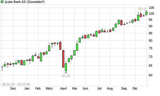 Mit dem Anstieg auf 100,20 EUR hat die Jyske Bank-Aktie (ISIN DK0010307958) am 29.10.2025 ein neues All-Time-High erreicht und damit den Kurs vom 14.10.2025 eingestellt.Die Jyske Bank-Aktie ...weiterlesen