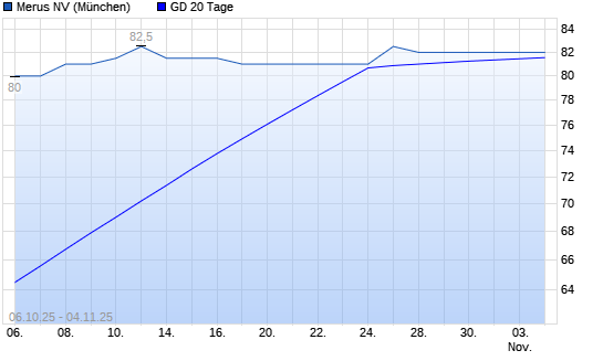 Mit dem Anstieg auf 81,00 EUR hat die Merus-Aktie am 03.11.2025 die 20-Tage-Linie nach oben gekreuzt.Der Abstand zur 200-Tage-Linie beträgt aktuell +64,34%. ...weiterlesen