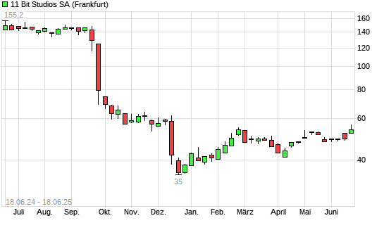 Mit dem Anstieg auf 54,30 EUR hat die 11 BIT STUDIOS SA-Aktie (ISIN PL11BTS00015) am 17.06.2025 ein neues 6-Monats-Hoch erreicht und damit den Kurs vom 09.06.2025 eingestellt.