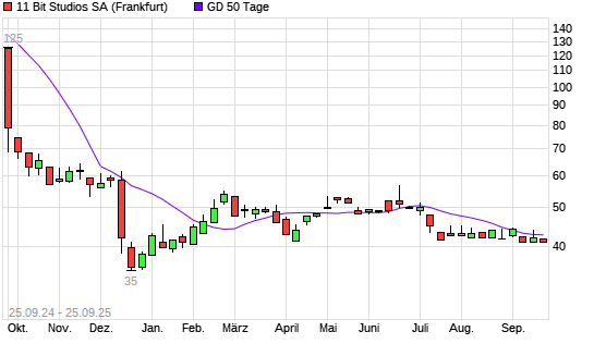 Mit dem Anstieg auf 42,96 EUR hat die 11 BIT STUDIOS SA-Aktie am 24.09.2025 die 50-Tage-Linie nach oben gekreuzt.