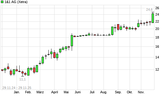 Mit dem Anstieg auf 24,50 EUR hat die 1&1 Drillisch-Aktie (ISIN DE0005545503) am 28.11.2025 ein neues 3-Jahres-Hoch erreicht und damit den Kurs vom 27.11.2025 eingestellt.