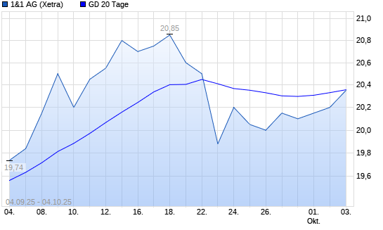 Mit dem Anstieg auf 20,30 EUR hat die 1&1 Drillisch-Aktie am 03.10.2025 die 20-Tage-Linie nach oben gekreuzt.