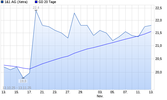Mit dem Anstieg auf 21,50 EUR hat die 1&1 Drillisch-Aktie am 12.11.2025 die 20-Tage-Linie nach oben gekreuzt.