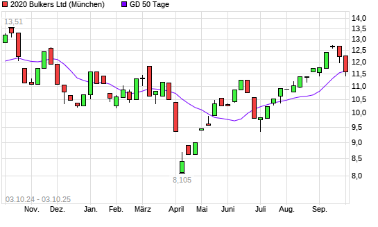 Mit dem Anstieg auf 11,52 EUR hat die 2020 Bulkers-Aktie am 02.10.2025 die 50-Tage-Linie nach oben gekreuzt.