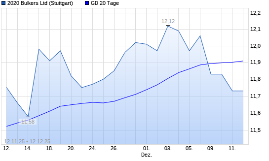 Mit dem Rücksetzer auf 11,96 EUR hat die 2020 Bulkers-Aktie am 11.12.2025 die 20-Tage-Linie nach unten gekreuzt.