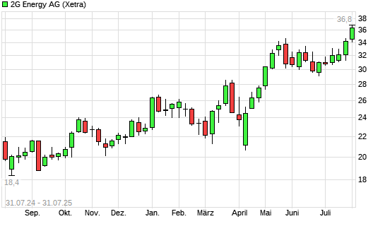 Mit dem Anstieg auf 36,00 EUR hat die 2G Energy-Aktie (ISIN DE000A0HL8N9) am 30.07.2025 ein neues All-Time-High erreicht und damit den Kurs vom 29.07.2025 eingestellt.