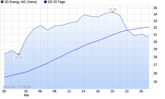 Mit dem Anstieg auf 32,30 EUR hat die 2G Energy-Aktie am 26.05.2025 die 20-Tage-Linie nach oben gekreuzt.