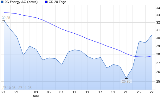 Mit dem Anstieg auf 30,05 EUR hat die 2G Energy-Aktie am 26.11.2025 die 20-Tage-Linie nach oben gekreuzt.