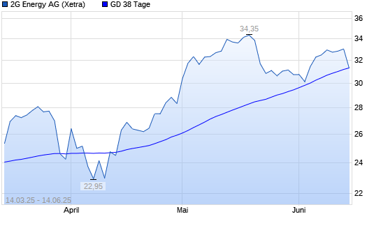 Mit dem Rücksetzer auf 31,15 EUR hat die 2G Energy-Aktie am 13.06.2025 die 38-Tage-Linie nach unten gekreuzt.
