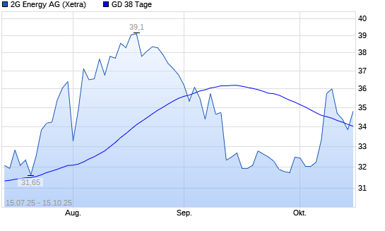 Mit dem Rücksetzer auf 34,00 EUR hat die 2G Energy-Aktie am 14.10.2025 die 38-Tage-Linie nach unten gekreuzt.