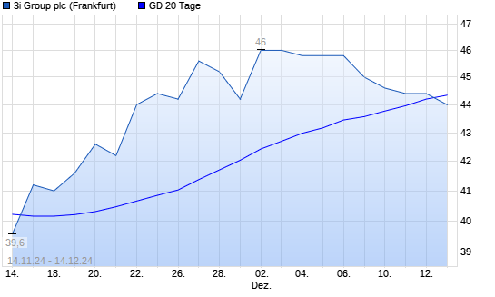 Mit dem Rücksetzer auf 44,00 EUR hat die 3I Group-Aktie am 13.12.2024 die 20-Tage-Linie nach unten gekreuzt.