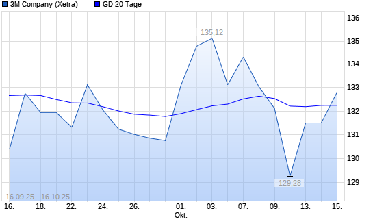 Mit dem Anstieg auf 132,02 EUR hat die 3M-Aktie am 15.10.2025 die 20-Tage-Linie nach oben gekreuzt.