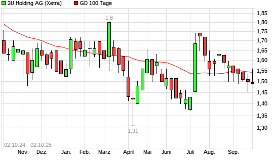 Mit dem Anstieg auf 1,54 EUR hat die 3U Holding-Aktie am 01.10.2025 die 100-Tage-Linie nach oben gekreuzt.