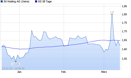 Mit dem Anstieg auf 1,62 EUR hat die 3U Holding-Aktie am 12.03.2025 die 38-Tage-Linie nach oben gekreuzt.