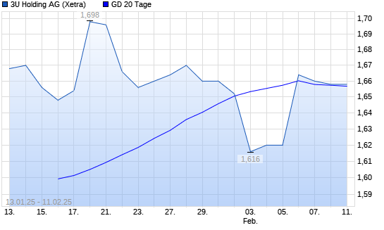 Mit dem Rücksetzer auf 1,61 EUR hat die 3U Holding-Aktie am 10.02.2025 die 20-Tage-Linie nach unten gekreuzt.