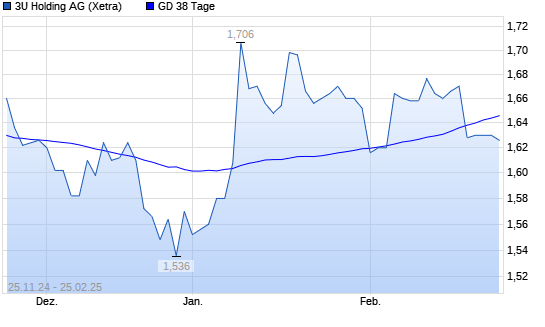Mit dem Rücksetzer auf 1,61 EUR hat die 3U Holding-Aktie am 24.02.2025 die 38-Tage-Linie nach unten gekreuzt.