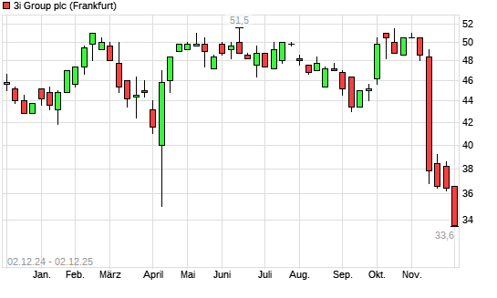 Mit dem Rücksetzer auf 36,20 EUR hat die 3i Group-Aktie (ISIN GB00B1YW4409) am 01.12.2025 ein neues 6-Monats-Tief erreicht und damit den Kurs vom 28.11.2025 eingestellt.