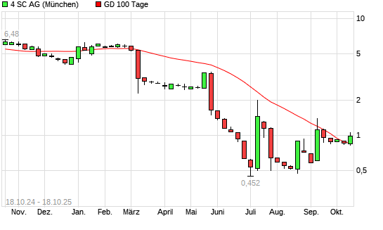Mit dem Anstieg auf 1,00 EUR hat die 4SC-Aktie am 17.10.2025 die 100-Tage-Linie nach oben gekreuzt.