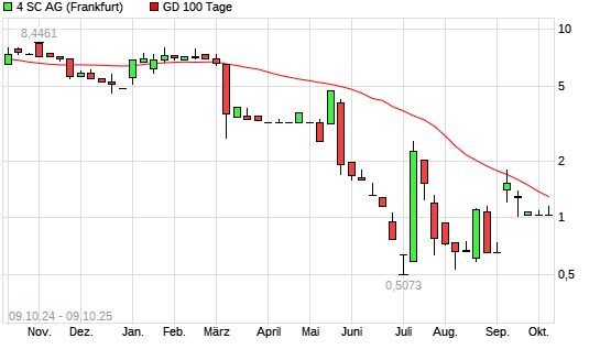 Mit dem Rücksetzer auf 0,81 EUR hat die 4SC-Aktie am 08.10.2025 die 100-Tage-Linie nach unten gekreuzt.
