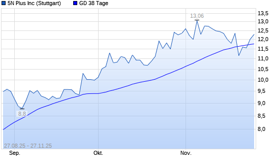 Mit dem Anstieg auf 12,02 EUR hat die 5N Plus-Aktie am 26.11.2025 die 38-Tage-Linie nach oben gekreuzt.