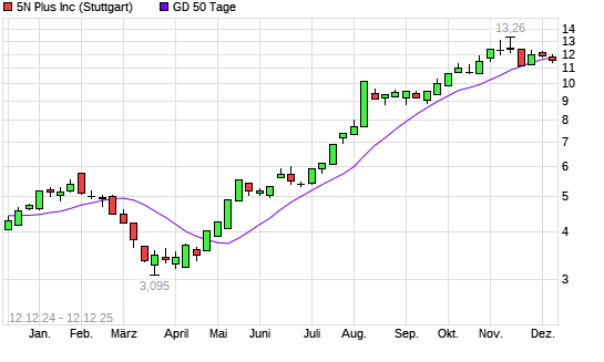 Mit dem Rücksetzer auf 11,44 EUR hat die 5N Plus-Aktie am 11.12.2025 die 50-Tage-Linie nach unten gekreuzt.