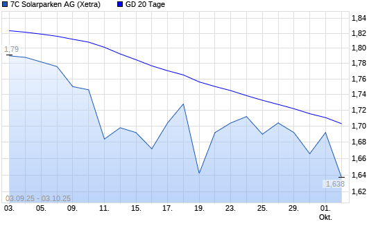 Mit dem Rücksetzer auf 1,68 EUR hat die 7C Solarparken-Aktie am 02.10.2025 die 20-Tage-Linie nach unten gekreuzt.