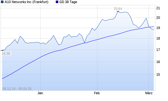 Mit dem Rücksetzer auf 18,92 EUR hat die A10 Networks-Aktie am 04.03.2025 die 38-Tage-Linie nach unten gekreuzt.