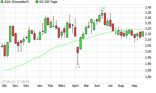 Mit dem Rücksetzer auf 2,16 EUR hat die A2A-Aktie am 26.09.2025 die 200-Tage-Linie nach unten gekreuzt.