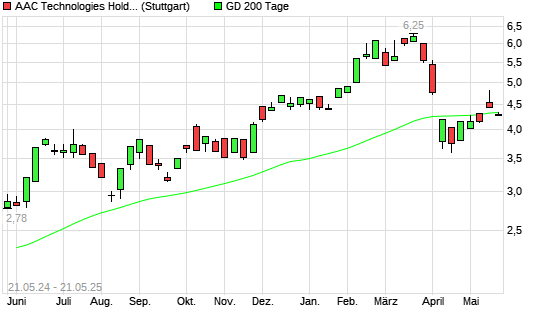 Mit dem Rücksetzer auf 4,30 EUR hat die AAC Technologies-Aktie am 20.05.2025 die 200-Tage-Linie nach unten gekreuzt.
