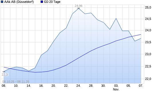 Mit dem Rücksetzer auf 23,68 EUR hat die AAK AB-Aktie am 07.11.2025 die 20-Tage-Linie nach unten gekreuzt.