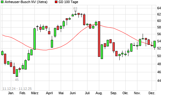 Mit dem Anstieg auf 52,92 EUR hat die AB InBev-Aktie am 10.12.2025 die 100-Tage-Linie nach oben gekreuzt.